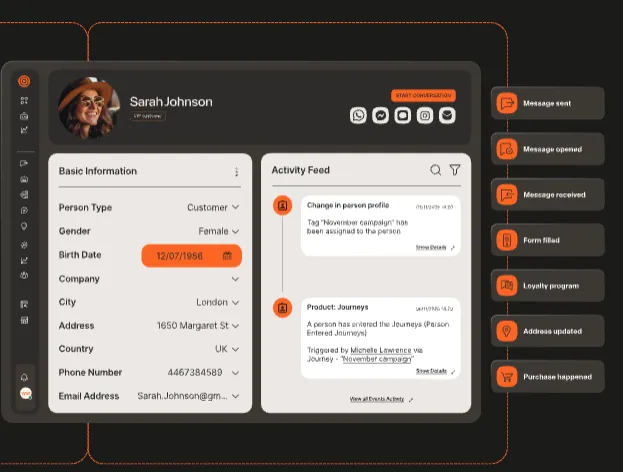 Historial completo, segmentación y contexto unificado para cada interacción con el Cliente.